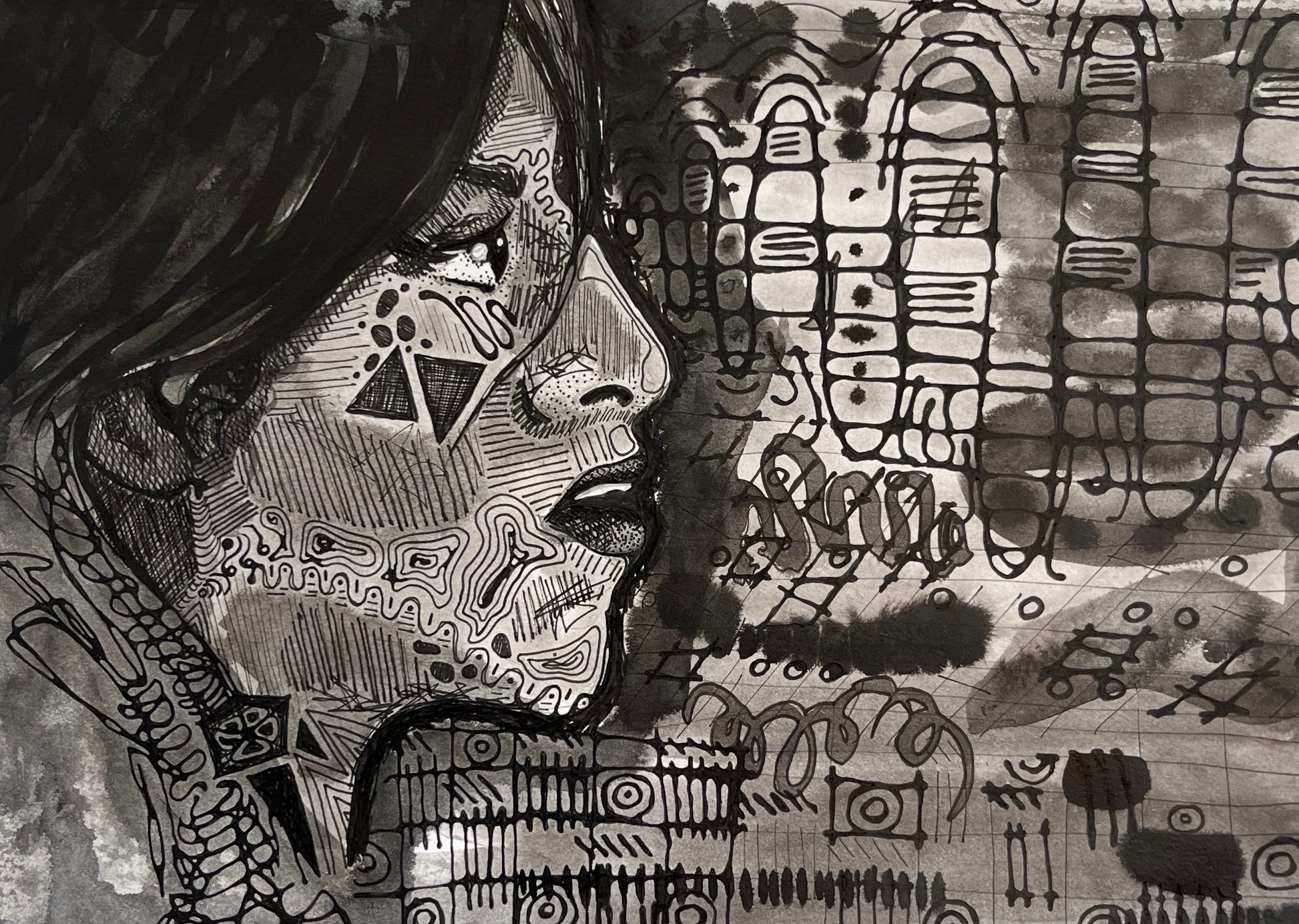 This original painting was made with my favorite materials at present: fine-liner ink pens and sumi ink. The inspiration to paint this came from an at the time disappointing tryst gone wrong. So of course I put on Love is a Losing Game among other equally soulful and gut-wrenching hits, convinced myself I'd die alone, and made this. At which point having felt all the feelings I considered just *maybe* I wouldn't die alone (it's going quite well I'm happy to say!).